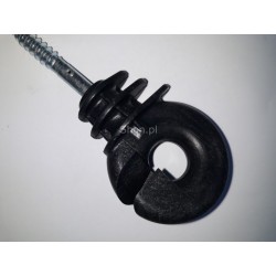 Wykonany z trwałego tworzywa izolator, wyposażony w gwint do drewna, w łatwy sposób wkręcany w słupek ogrodzenia elektrycznego. Jest również możliwość mocowania tych izolatorów w słupkach betonowych, należy nawiercić otwory , wbić kołki rozporowe i bez problemu można wkręcić izolator.