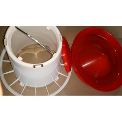 Karmnik zasypowy zwany również automatem paszowym. Pokrywa umożliwia łatwe uzupełnianie karmy, jednocześnie chroniąc przed zabrudzeniami i dostępem kurzu. Dolne żeberkowe zabezpieczenia uniemożliwiają ptactwu rozsypywanie karmy. Dzięki uchwytowi można swobodnie przenosić i zawieszać karmnik. Prosty w czyszczeniu i dezynfekcji.