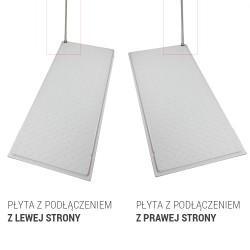 Płyta grzewcza w kształcie prostokąta o wymiarach 90 x 50 cm , wykonana z mocnego tworzywa . Może by układana bezpośrednio na posadzce , posiada też cztery otwory montażowe , które można ,w razie potrzeby wykorzysta do przymocowania płyty do podłoża.