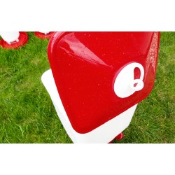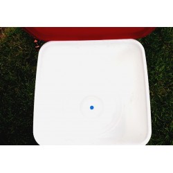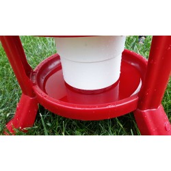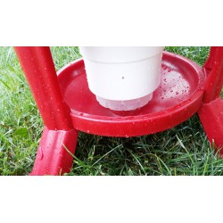 Poidło może być wykorzystywany nazewnątrz, jak iwewnątrzkurnika dlawszelkiego rodzaju drobiu: kur, kaczek, gęsi, bażantów, indyków itd. Składa się z trzech elementów:zasobnika, misyoraznóżekzapewniających stabilność. Wodę w poidle uzupełnić można dolewając jąod górypoprzez podniesienie pokrywy lub odsłonięcie zasuwy np. wykorzystując do tego celuwąż. Przed przedostaniem się zanieczyszczeń do wody chroni górna pokrywa. Dodatkowo zasobnik wyposażony został wfiltr syfonowy (zdj. 9), który w razie zabrudzeń oczyszcza ciecz podawaną ptakom. Specjalnie opracowany mechanizm przelewowy w poidle sprawia, żewoda nie wylewa sięz poidła.
