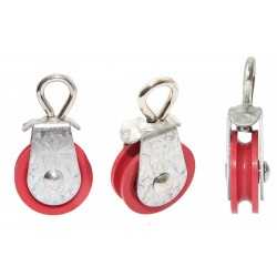 Bloczek do podwieszania linii karmienia wyposażony jest w ruchomy haczyk o średnicy oczka 15 mm. Krążek liniowy o średnicy fi 40 mm znajduje się w osłonie z blachy ocynkowanej.