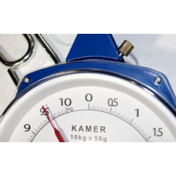 Wykonana z wysokiej jakości materiałów, transparentna osłona zabezpiecza podziałkę . Zakres ważenia do 10 kg , z podziałką co 50 g. Waga dostarczana z dwoma hakami do podwieszenia.
